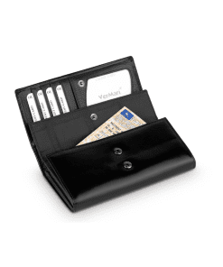Ekta leður með hólf fyrir kort, seðla og smápening.