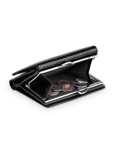 Ekta leður með hólf fyrir kort, seðla og smápening.