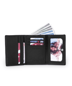 Leður seðlaveski með hólf fyrir kort, seðla og smápening.