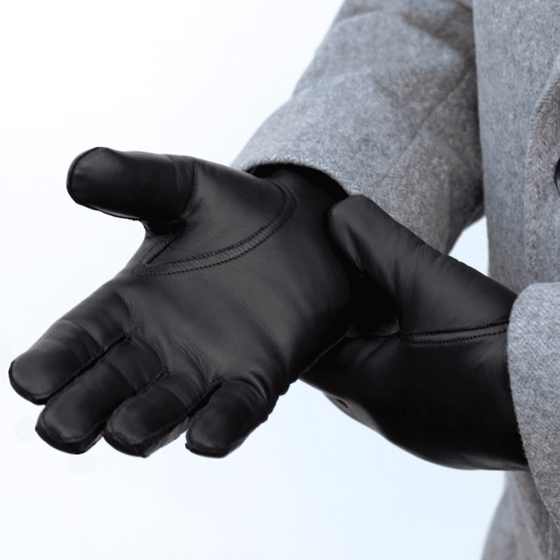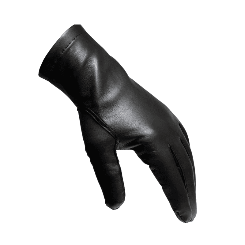 Hanskarnir eru unnir úr mjúku og endingargóðu náttúrlegu leðri sem mótast að hendi notandans og veitir bæði þægindi og glæsilegt útlit.