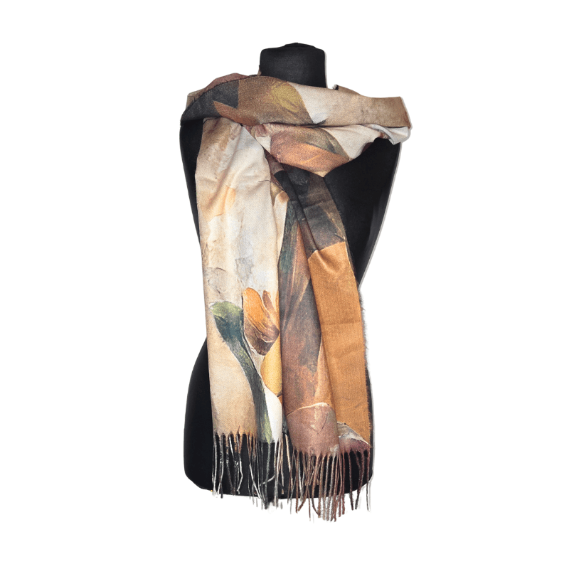 Blómamynstrið gefur pashminunni rómantískt og tímalaust yfirbragð sem lyftir hvaða outfit sem er. Hún er fullkomin sem axlarsjal eða sem stílhrein viðbót við jakkann eða kápu.