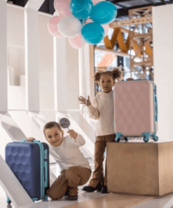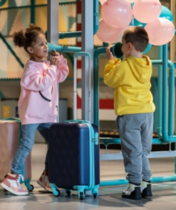 Handfarangurs töskur fyrir börn, unnar úr rispheldu ABS efni. Með fjórum 360° gúmmí hjólum fyrir stöðugleika og léttleika í allar áttir. Tveggja lenginga telescopic handfang þannig að hægt sé að stilla í rétta hæð fyrir barnið.